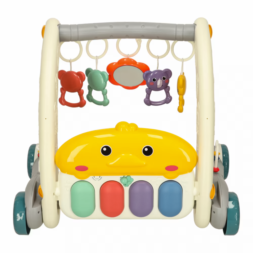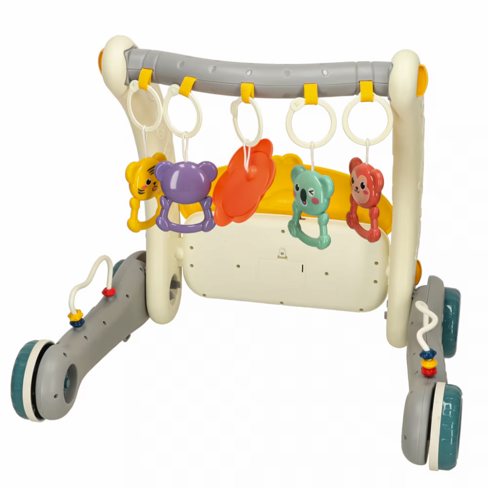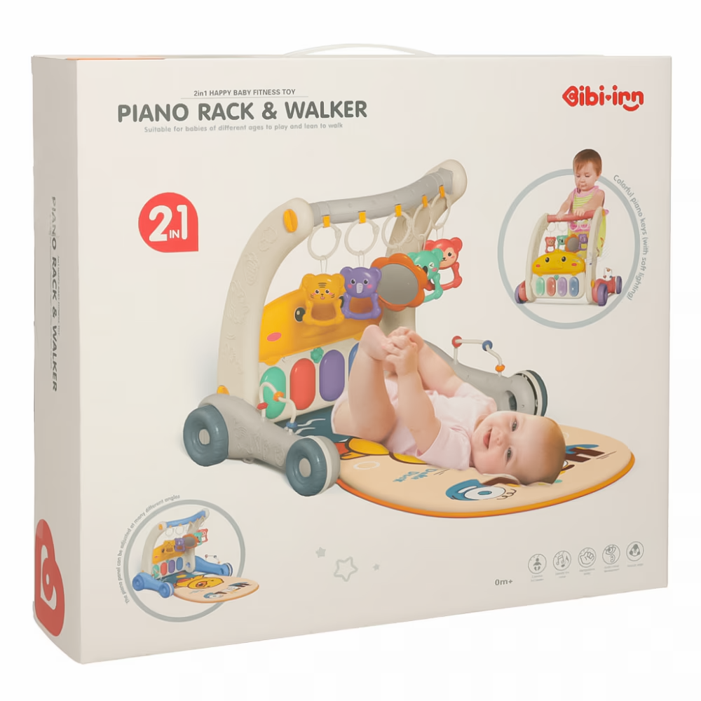 - echipat cu mini pian și jucării, imbunatățește abilitățile senzoriale, motorii și cognitive;