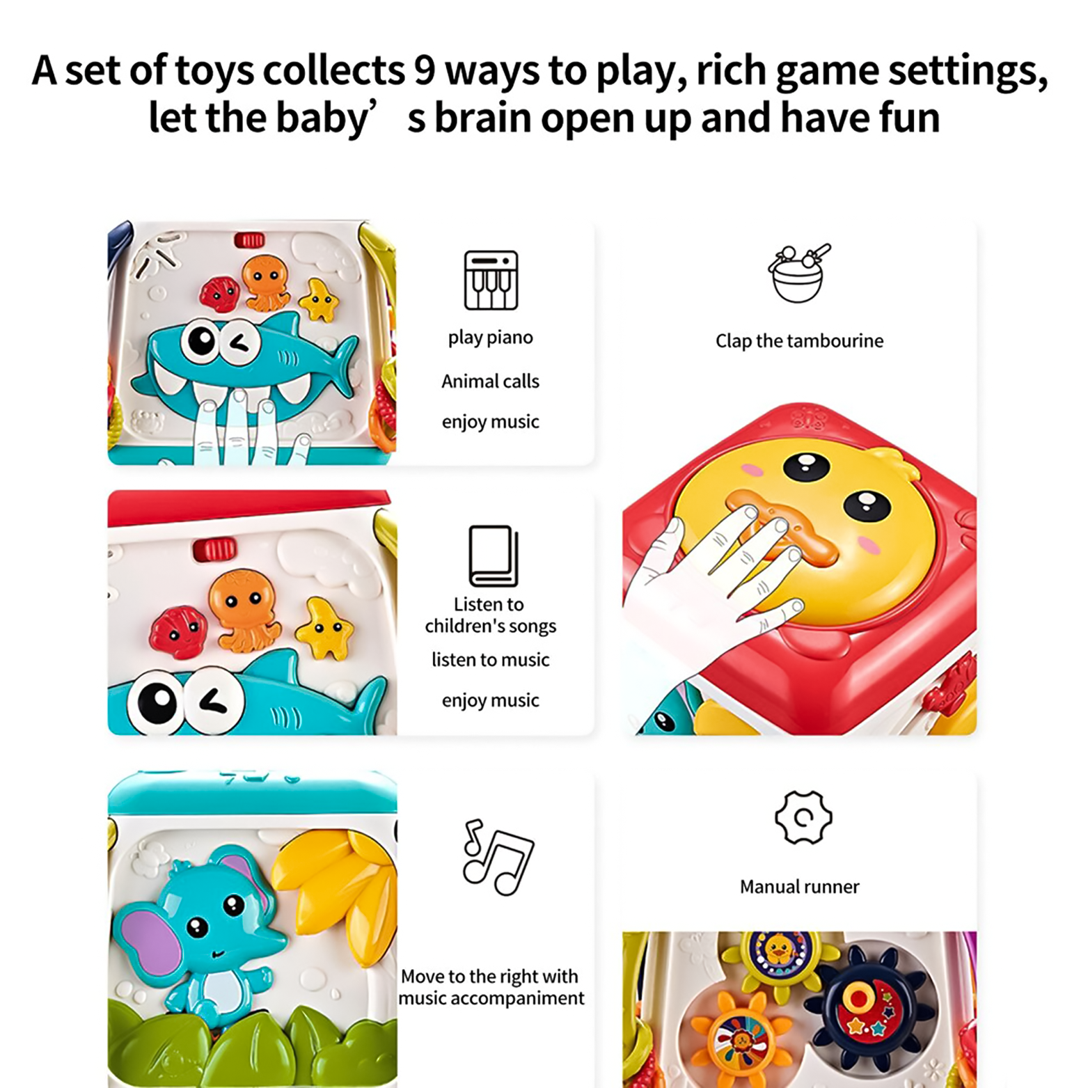 Cub interactiv de activitati pentru bebelus, cu 9 moduri de joaca, sunete si lumini