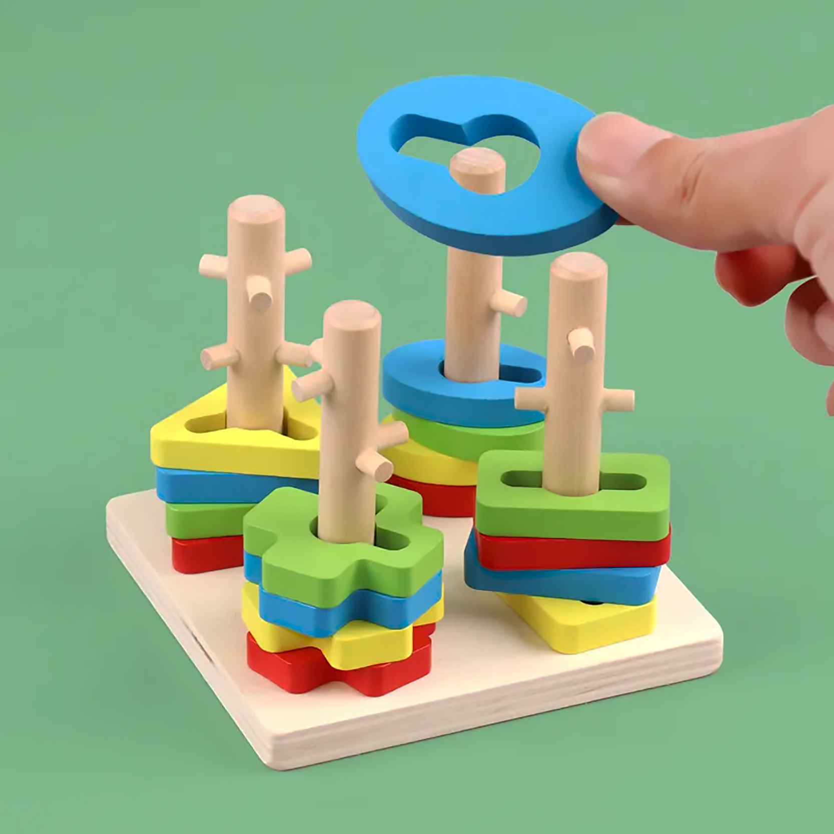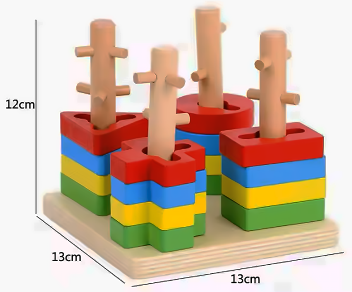 Ajuta la exersarea abilitățile motorii fine ale mainii copilului, dobandind precizie in plasarea micilor blocuri de lemn de diferite forme pe coloane in asocierea si potrivirea formelor sau conceptelor, ajută la identificarea și distingerea formelor și culorilor.
