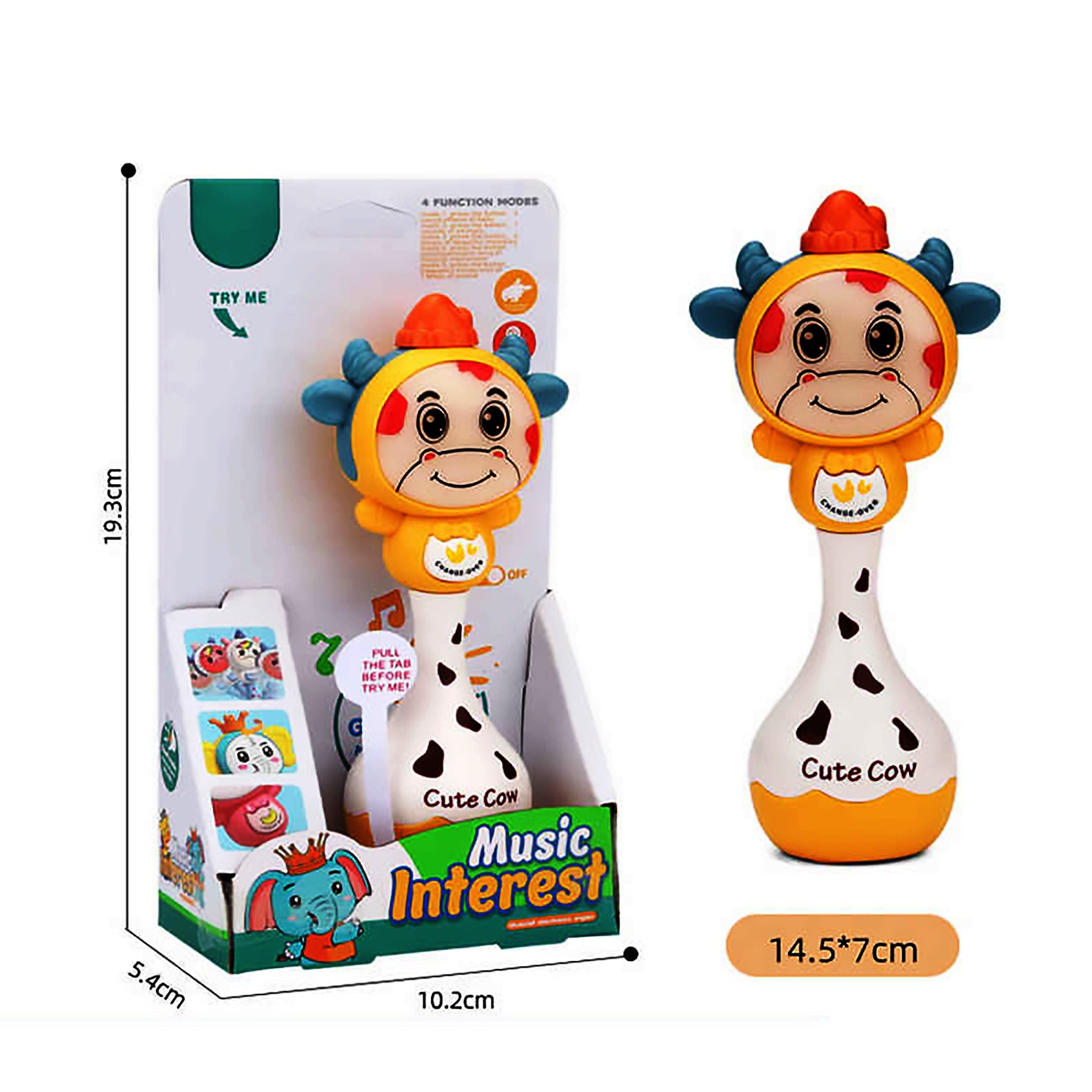Jucarie bebelusi Vacuta muzicala, design minimalist, efecte sonore la atingere, forma potrivita pentru a fi usor de apucat de manutele mici, plastic