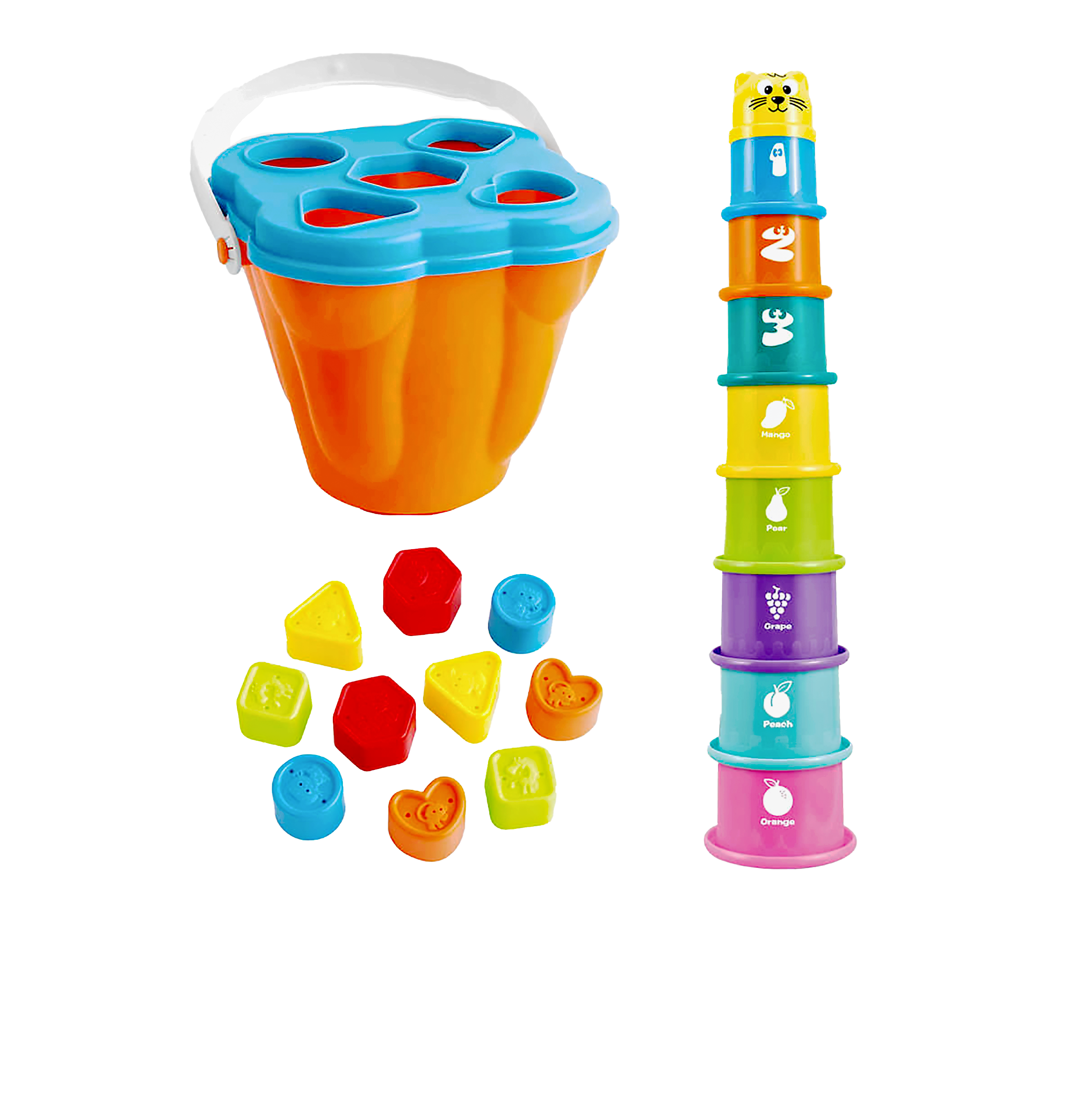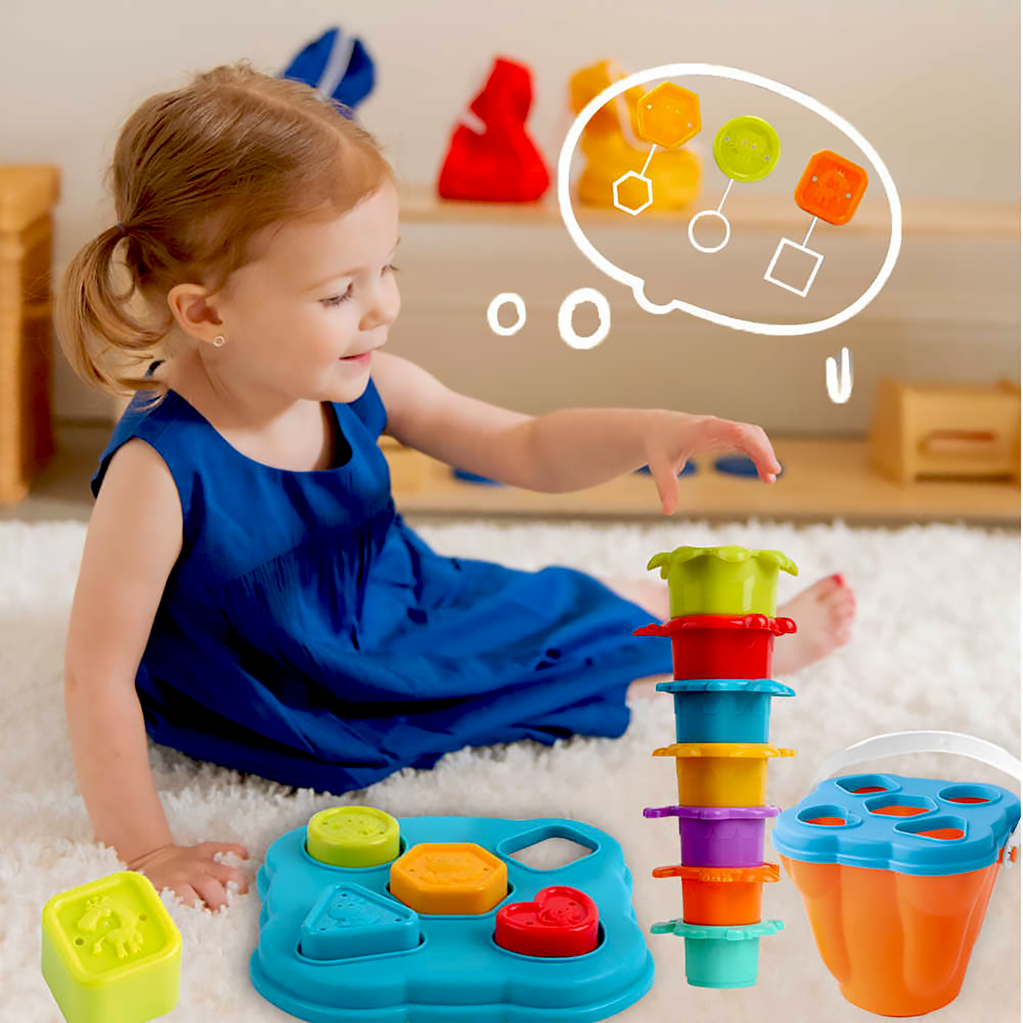 Jucarie galetusa stil Montessori cu diverse forme pentru sortare si stivuire, figuri geometrice, plastic, multicolor