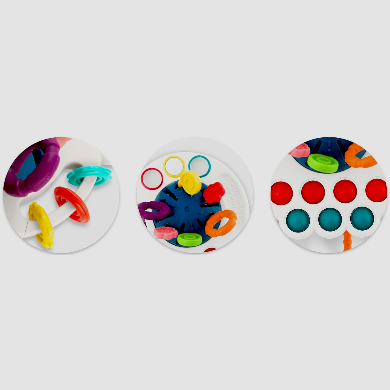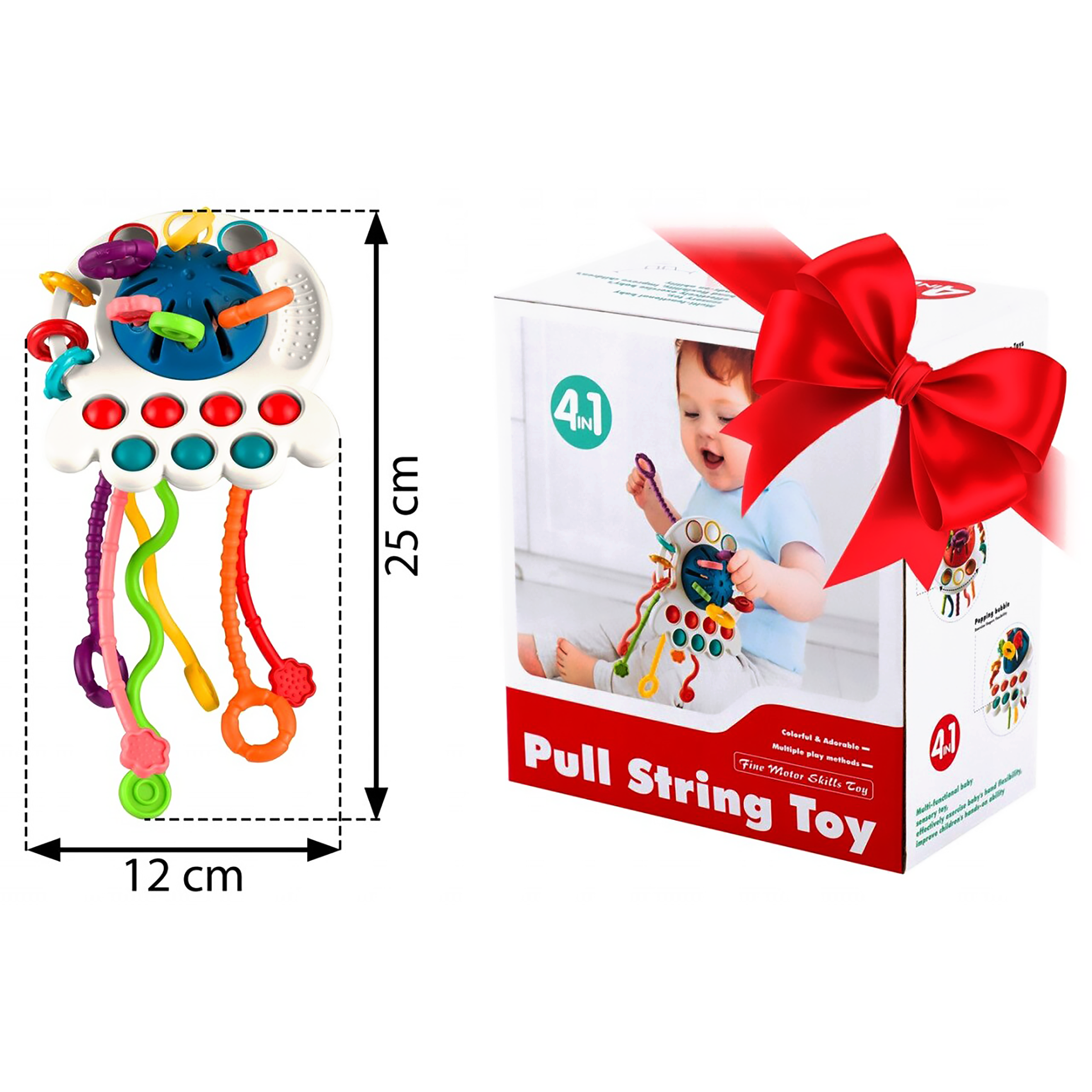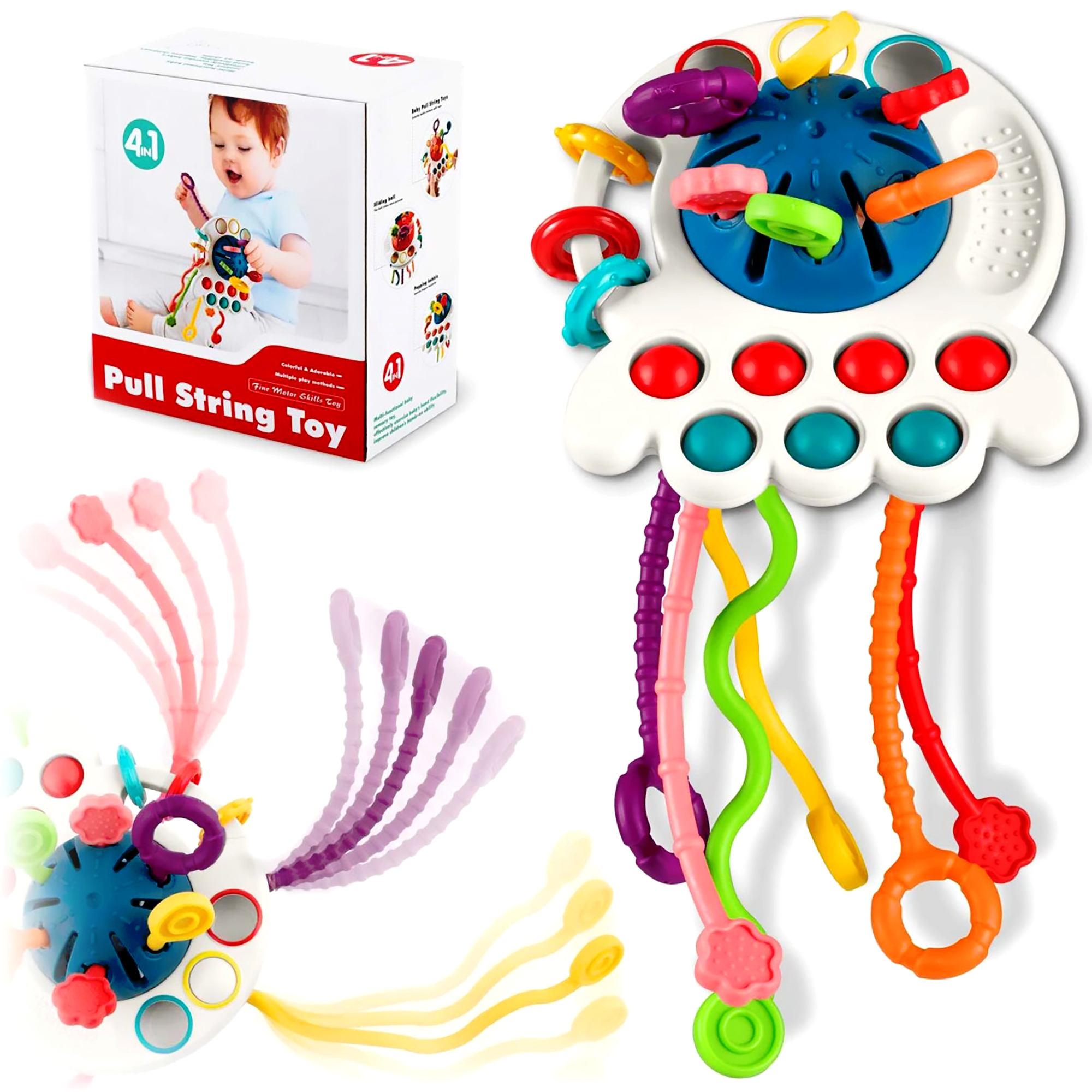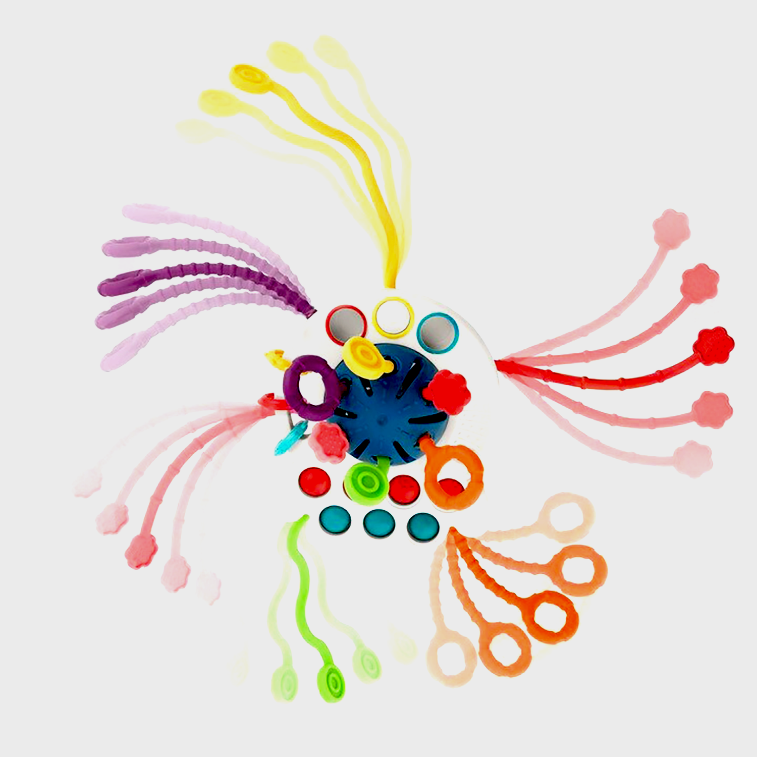 Jucarie dentitie bebelusi Caracatita vesela, cu diferite texturi, striatii, pop it, plastic si silicon alimentar, + 0 luni, multicolor