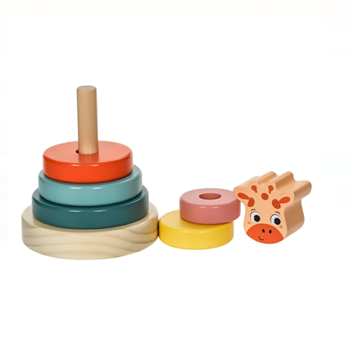 Piramida educativa din lemn cu 5 Inele Girafa, 10x14cm