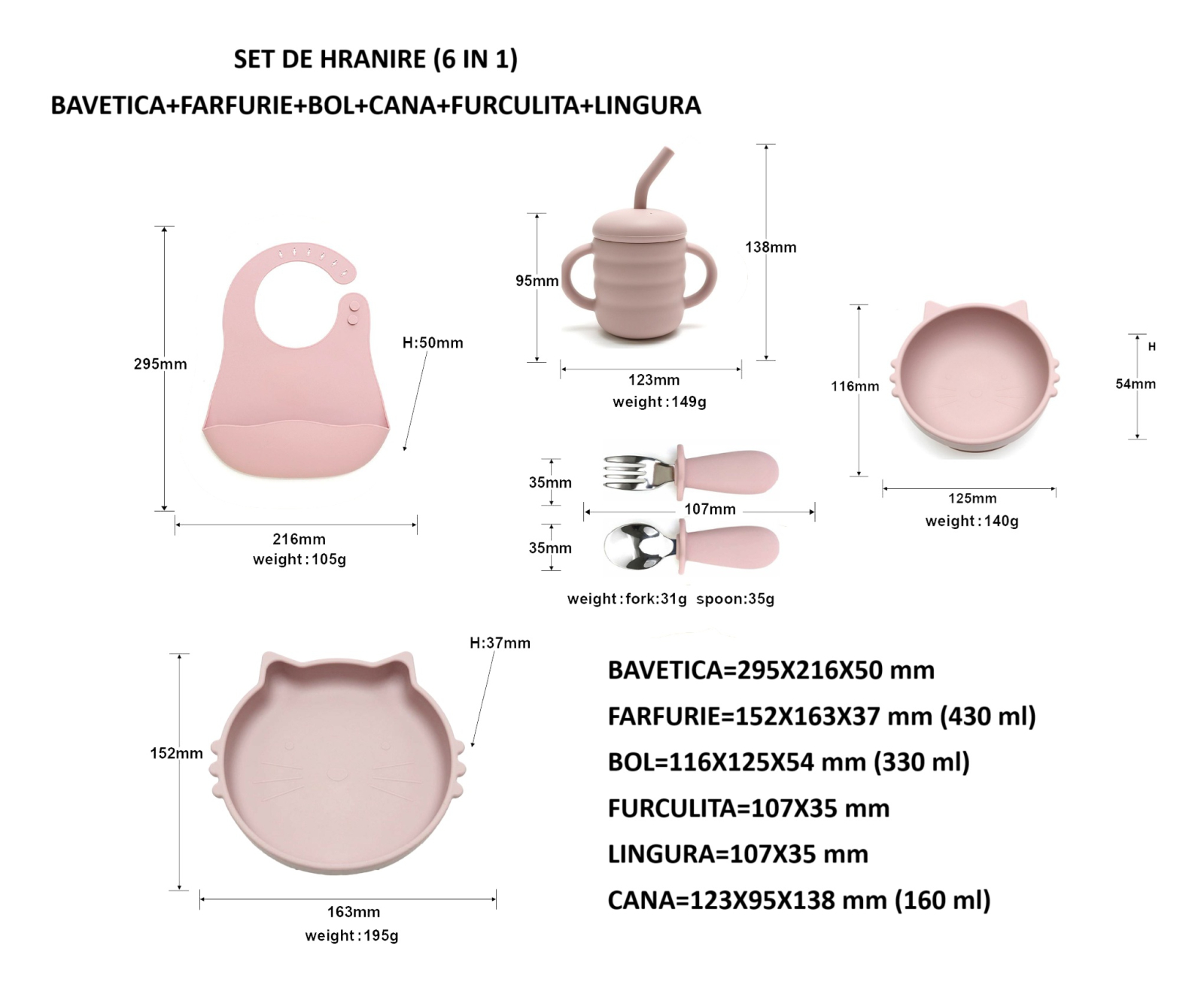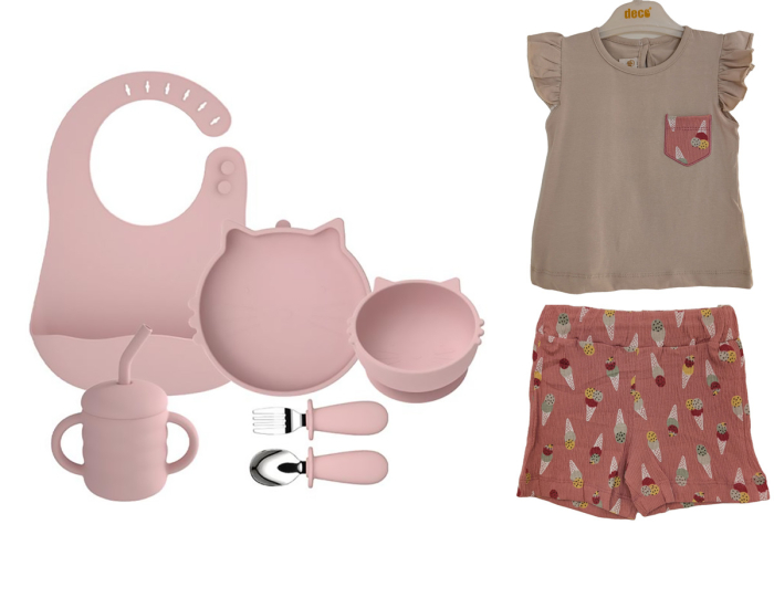Acest set special combină un set de hrănire din silicon (6 piese) cu un compleu adorabil pentru copii, fiind alegerea perfectă pentru părinții care își doresc funcționalitate și design într-un singur produs.